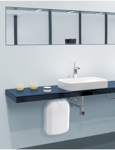 An easy-to-install washbasin heater with a 5L stainless steel tank. Does not require additional connections or a chimney.